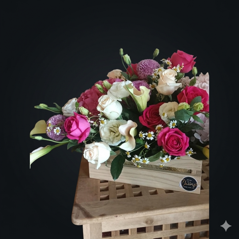 - Wood Crate with a mix of Fresh Flowers